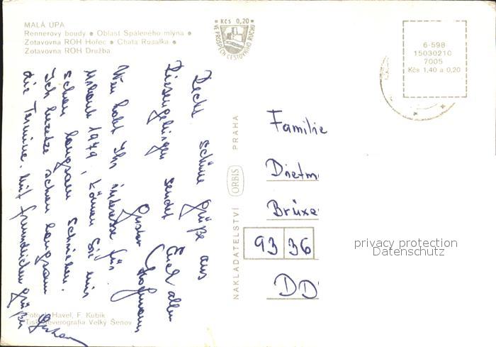 old postcard Mala Upa Rennerovy boudy Oblast Speleneho mlyna Zotavovna ROH Horez ROH Druzba Chata Rusalka postalisch gelaufen Erhaltung siehe scans