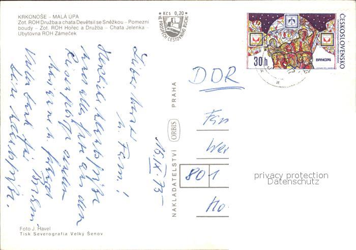 old postcard Mala Upa ROH Druzba chata Devetsil se Snezkou postalisch gelaufen Erhaltung siehe scans