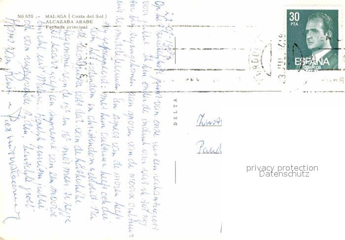 old postcard Malaga Andalucia Alcazaba Arabe Fachada principal postalisch gelaufen Erhaltung siehe scans [LiesaD40]