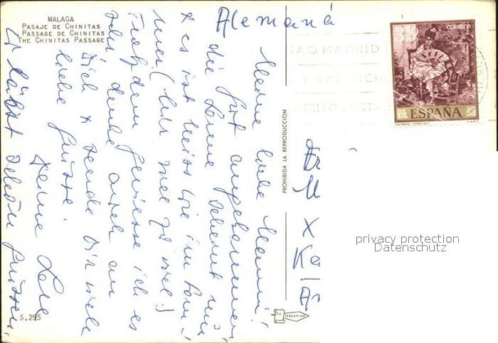 old postcard Malaga Andalucia Chinitas Passage postalisch gelaufen Erhaltung siehe scans