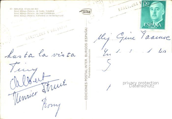 old postcard Malaga Andalucia Hotel Palast Malaga postalisch gelaufen Erhaltung siehe scans