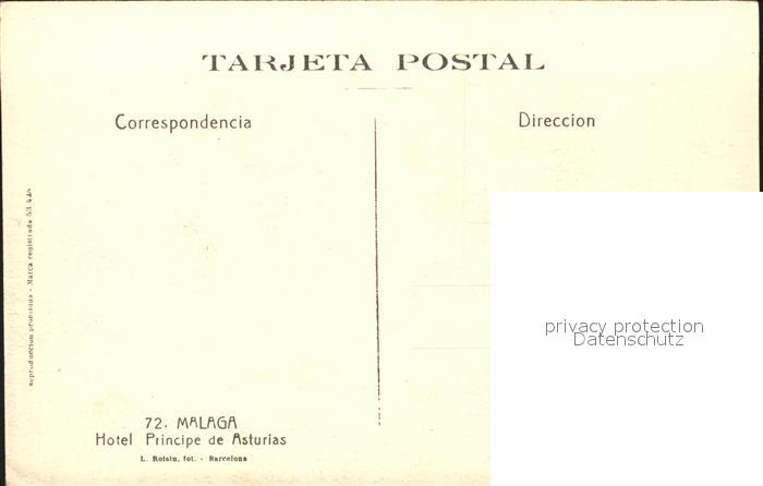 Malaga Andalucia Hotel Principe de Asturias postalisch nicht gelaufen Erhaltung siehe scans