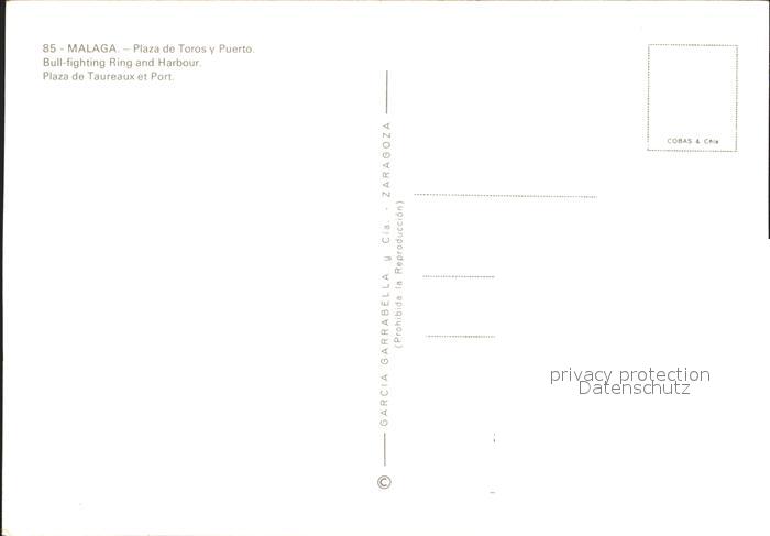 Malaga Andalucia Plaza de Toros y Puerto Stierkampfarena Hafen Denkmal postalisch nicht gelaufen Erhaltung siehe scans