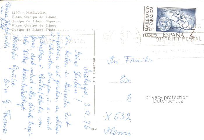 old postcard Malaga Andalucia Plaza Queipo de Lilano postalisch gelaufen Erhaltung siehe scans