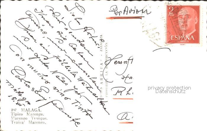 old postcard Malaga Andalucia Tipico Marengo postalisch gelaufen Erhaltung siehe scans