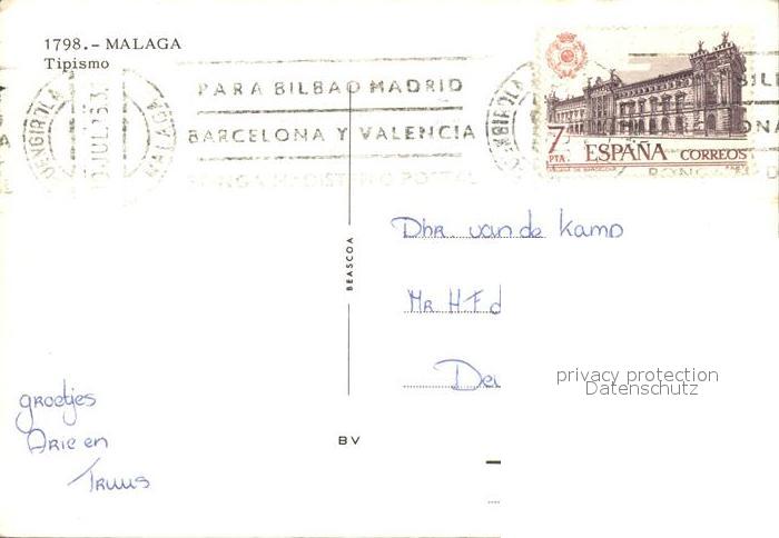 old postcard Malaga Andalucia Tipismo postalisch gelaufen Erhaltung siehe scans