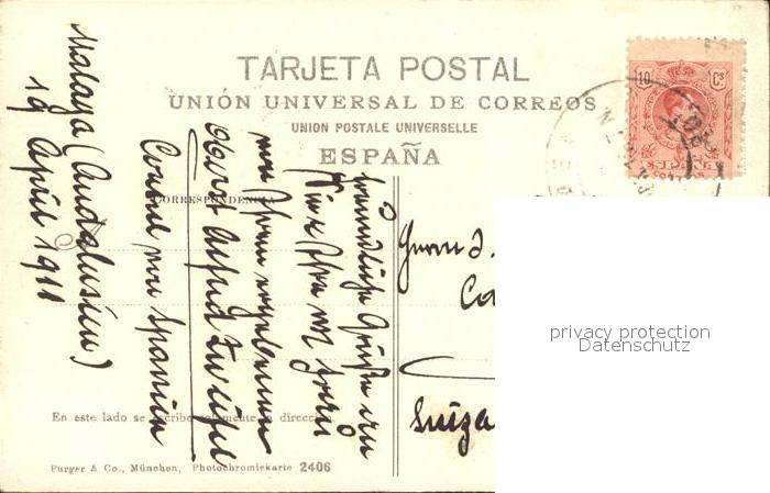 old postcard Malaga Andalucia Una Malaguena a la salud de vi postalisch gelaufen Erhaltung siehe scans