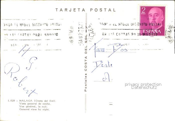 old postcard Malaga Andalucia Vista general de noche postalisch gelaufen Erhaltung siehe scans