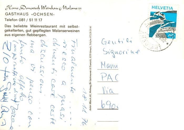 13889442 alte Postkarte Malans GR Hans Donatsch Weinbau Gastraum Weinfaesser postalisch gelaufen Erhaltung siehe scans [WerneD78] KatCode: 11470100330196