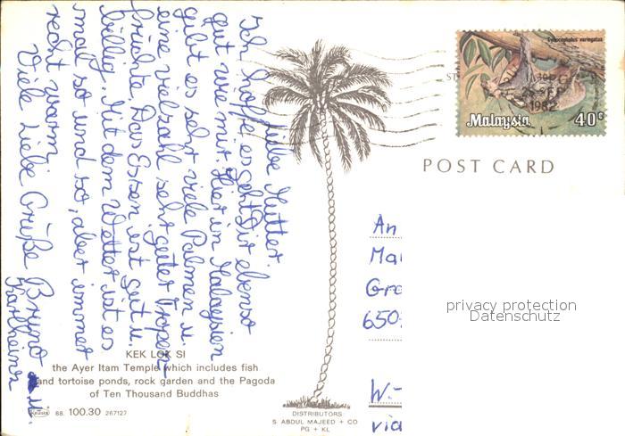 old postcard Malaysia Malaya Kek Lok Si Tempel postalisch gelaufen Erhaltung siehe scans