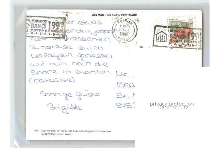 old postcard Malaysia Malaya Over the Sea on Top of Hills Malaysia villages are everywhere but never on top of trees postalisch gelaufen Erhaltung siehe scans