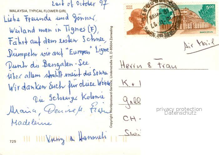old postcard Malaysia Malaya Typical Flower Girl postalisch gelaufen Erhaltung siehe scans [LiesaD40]