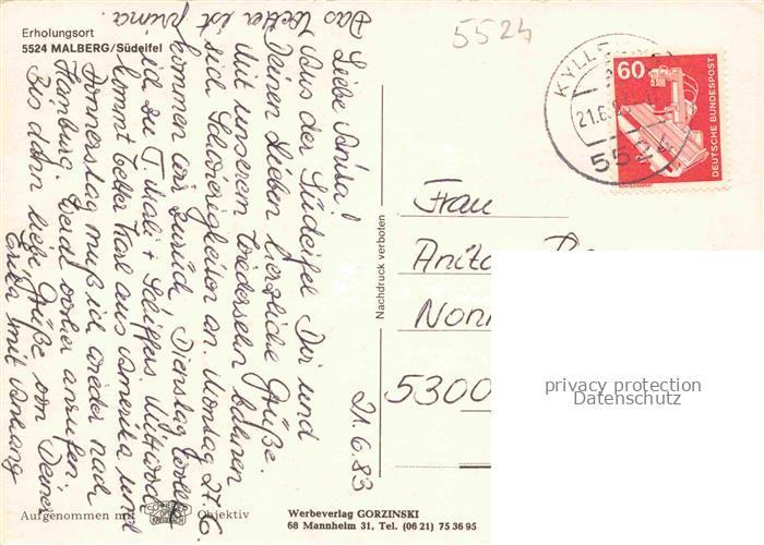 74054901 alte Postkarte Malberg Eifel Fliegeraufnahmen Schlosspartien postalisch gelaufen Erhaltung siehe scans [WerneD78] KatCode: 11110007232075