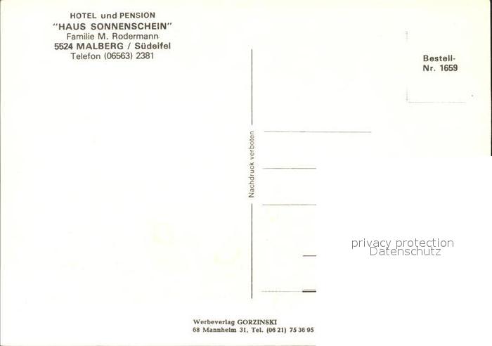 72326901 Malberg Eifel Hotel Haus Sonnenschein postalisch nicht gelaufen Erhaltung siehe scans KatCode: 11110007232075