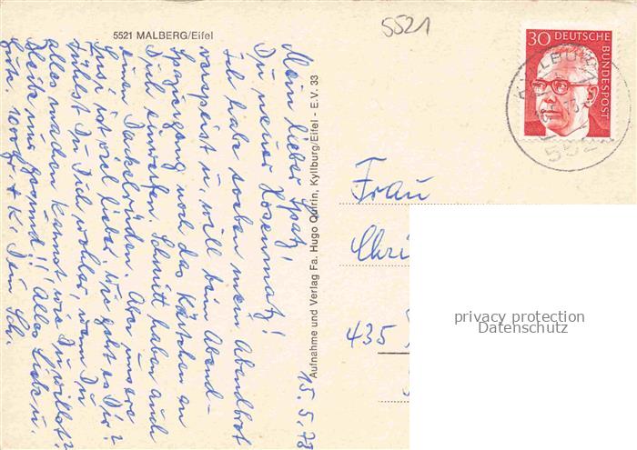 74055197 alte Postkarte Malberg Eifel Panorama Schloss postalisch gelaufen Erhaltung siehe scans [WerneD78] KatCode: 11110007232075