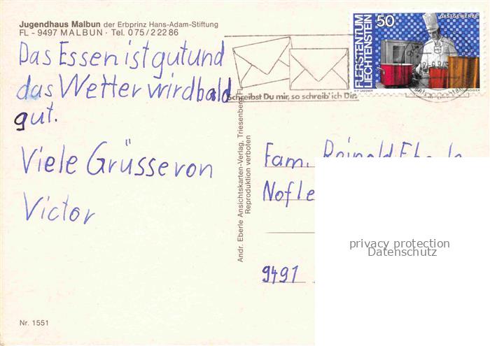 74086686 alte Postkarte Malbun Triesenberg Liechtenstein Jugendhaus Malbun postalisch gelaufen Erhaltung siehe scans [WerneD78] KatCode: 11280100100300
