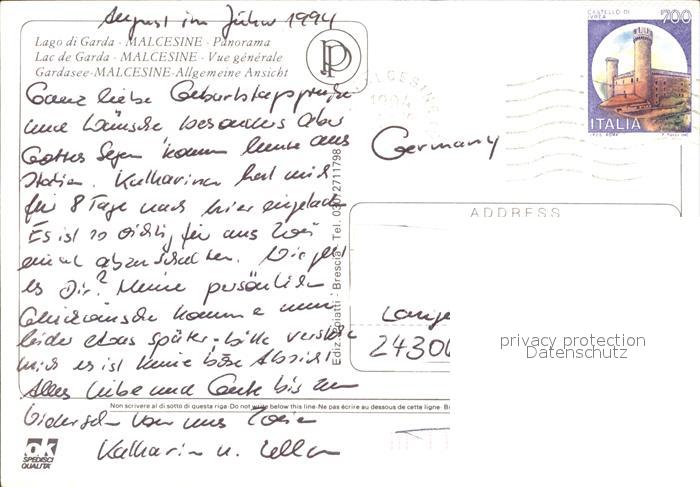 old postcard Malcesine Lago di Garda postalisch gelaufen Erhaltung siehe scans