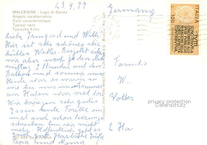 old postcard Malcesine Lago di Garda Altstadtgasse postalisch gelaufen Erhaltung siehe scans [KathaD81]