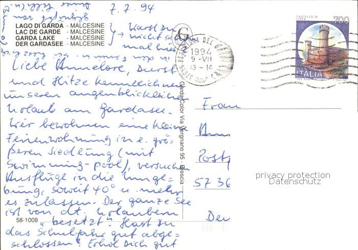 old postcard Malcesine Lago di Garda Castello postalisch gelaufen Erhaltung siehe scans
