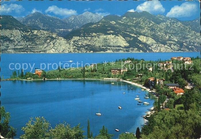 old postcard Malcesine Lago di Garda Fliegeraufnahme mit Lago postalisch gelaufen Erhaltung siehe scans