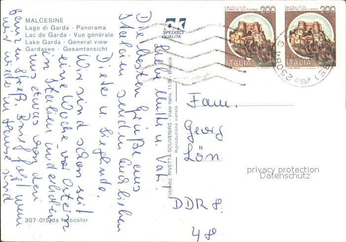 old postcard Malcesine Lago di Garda Gardasee Segelboote Schloss postalisch gelaufen Erhaltung siehe scans