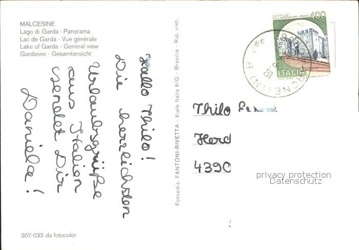 old postcard Malcesine Lago di Garda Gesamtansicht postalisch gelaufen Erhaltung siehe scans