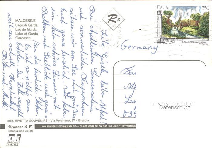 old postcard Malcesine Lago di Garda Gesamtansicht Park postalisch gelaufen Erhaltung siehe scans