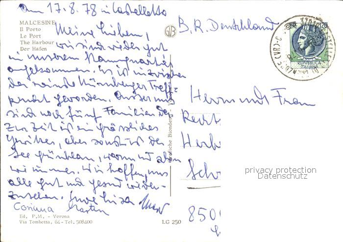 old postcard Malcesine Lago di Garda Hafen postalisch gelaufen Erhaltung siehe scans