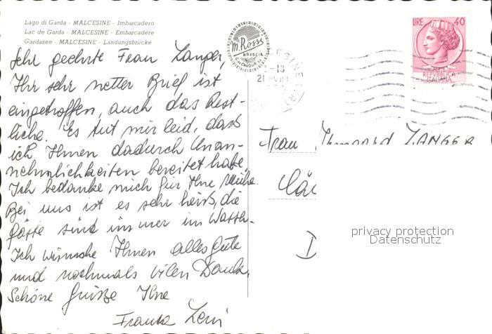 old postcard Malcesine Lago di Garda Hafen Fahrgastschiff postalisch gelaufen Erhaltung siehe scans