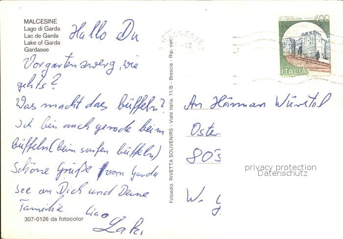 old postcard Malcesine Lago di Garda Hafen Windsurfen Gardasee Alpen postalisch gelaufen Erhaltung siehe scans