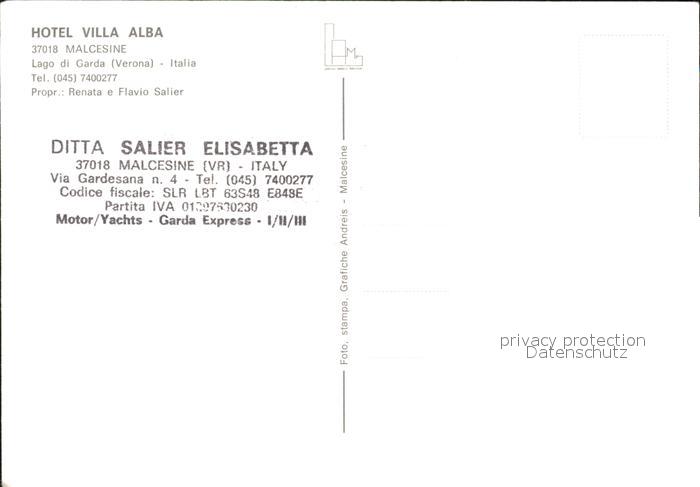 Malcesine Lago di Garda Hotel Villa Alba postalisch nicht gelaufen Erhaltung siehe scans