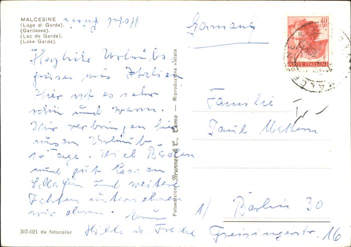 old postcard Malcesine Lago di Garda Panorama postalisch gelaufen Erhaltung siehe scans