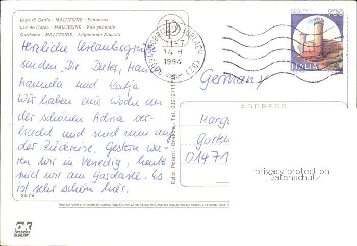 old postcard Malcesine Lago di Garda Panorama Gardasee Alpen postalisch gelaufen Erhaltung siehe scans