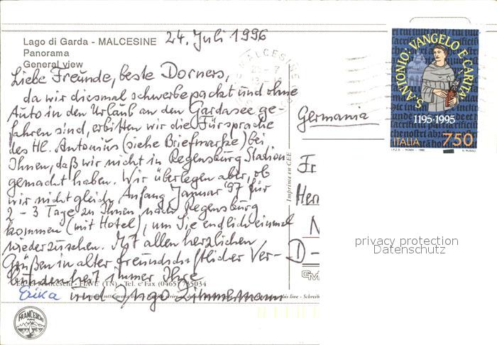 old postcard Malcesine Lago di Garda Panorama Gardasee Alpen postalisch gelaufen Erhaltung siehe scans
