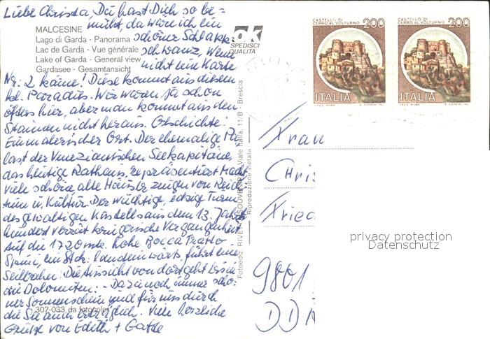old postcard Malcesine Lago di Garda Panorama Gardasee Alpen postalisch gelaufen Erhaltung siehe scans