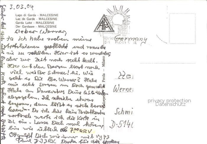 old postcard Malcesine Lago di Garda Panorama Gardasee Hafen Burg Baumbluete postalisch gelaufen Erhaltung siehe scans