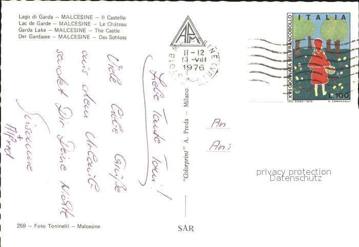 old postcard Malcesine Lago di Garda Schloss postalisch gelaufen Erhaltung siehe scans