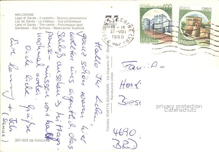 old postcard Malcesine Lago di Garda Schloss postalisch gelaufen Erhaltung siehe scans