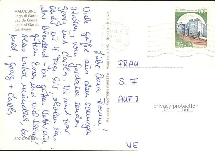 old postcard Malcesine Lago di Garda See Burg Hafen Panorama postalisch gelaufen Erhaltung siehe scans