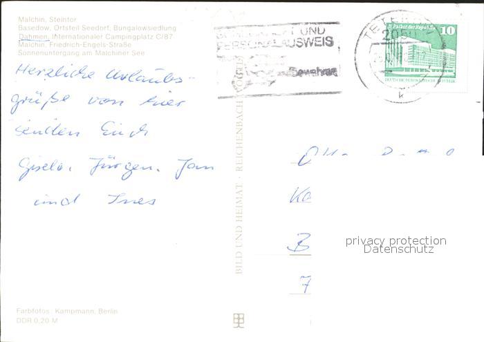 72331386 alte Postkarte Malchin Demmin See Steintor Basedow Bungalowsiedlung Campingplatz C/87 postalisch gelaufen Erhaltung siehe scans KatCode: 11110013052050