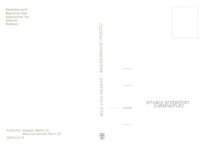 73813668 Malchin Demmin Stadtuebersicht Malchiner See Kalensches Tor Steintor Rathaus postalisch nicht gelaufen Erhaltung siehe scans [FriedD77] KatCode: 11110013052050