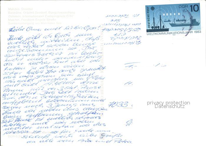 72373137 alte Postkarte Malchin Demmin Steintor Friedrich Engels Strasse Malchiner See Bungalowsiedlung Campingplatz postalisch gelaufen Erhaltung siehe scans KatCode: 11110013052050