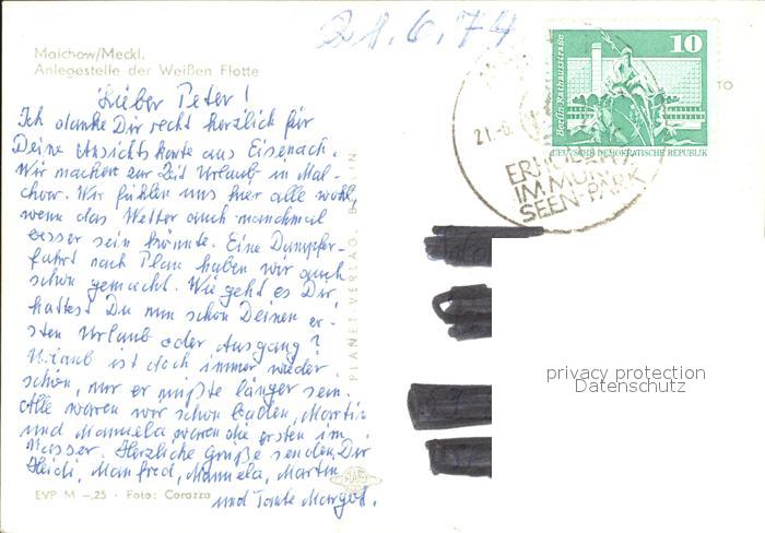 72170426 alte Postkarte Malchow Anlegestelle Weisse flotte postalisch gelaufen Erhaltung siehe scans KatCode: 11110013056041