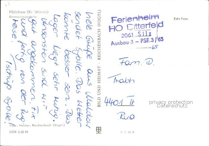 72136567 alte Postkarte Malchow Bootsanlegestelle postalisch gelaufen Erhaltung siehe scans KatCode: 11110013056041