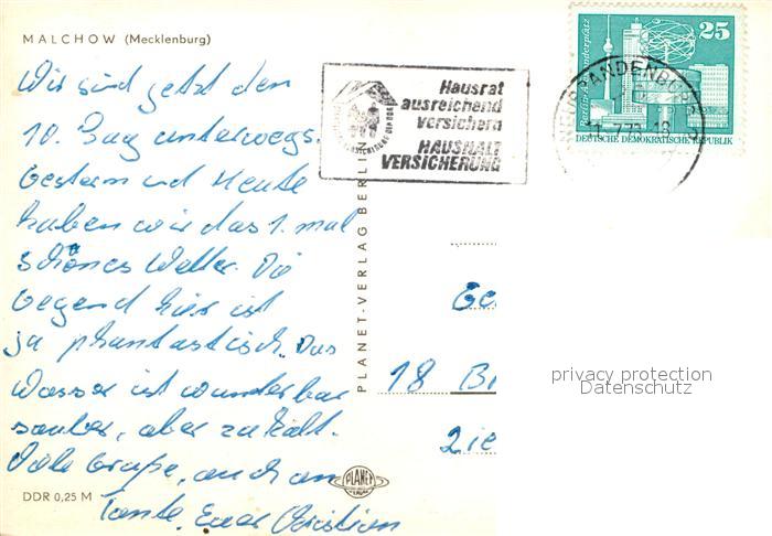 72917481 alte Postkarte Malchow Fleesensee postalisch gelaufen Erhaltung siehe scans [PaolaD17] KatCode: 11110013056041