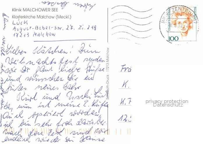 72782578 alte Postkarte Malchow Fliegeraufnahme Klosterkirche Klinik-Malchower See postalisch gelaufen Erhaltung siehe scans [LiesaD40] KatCode: 11110013056041