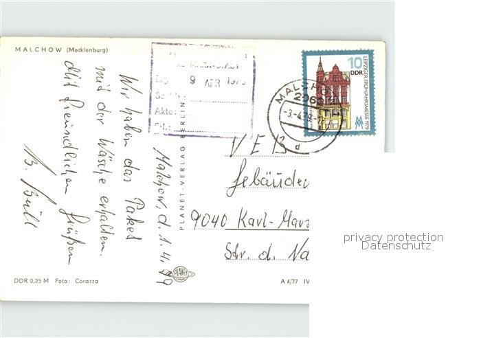 72384064 alte Postkarte Malchow Kirche postalisch gelaufen Erhaltung siehe scans KatCode: 11110013056041