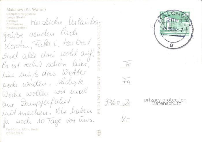 72102390 alte Postkarte Malchow Lange Strasse Rathaus Drehbruecke postalisch gelaufen Erhaltung siehe scans KatCode: 11110013056041