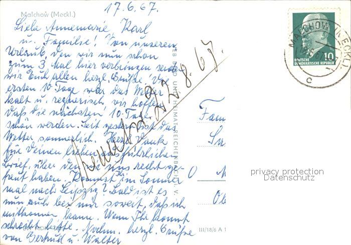 72168907 alte Postkarte Malchow Panorama postalisch gelaufen Erhaltung siehe scans KatCode: 11110013056041