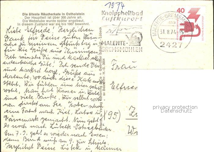 72316967 alte Postkarte Malente-Gremsmuehlen Alte Raeucherkate Webstube postalisch gelaufen Erhaltung siehe scans KatCode: 11110001055028